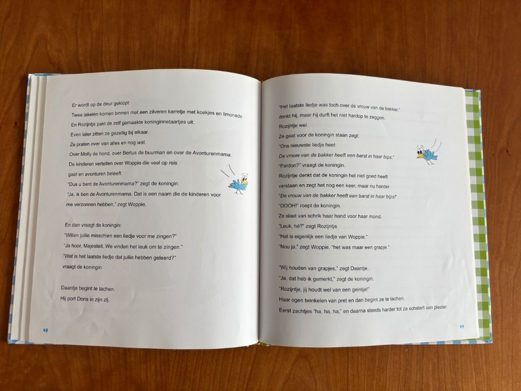 Ergens in Nederland wonen twee kinderen die een hele grappige mama hebben. Zij heet Woppie, maar ze noemen haar de avonturenmama. Omdat ze vaak avonturen meemaakt.