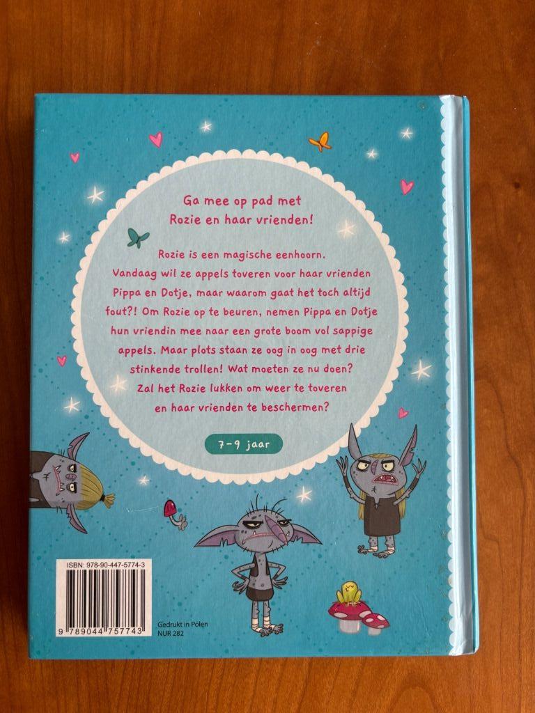 Ga mee op pad met Rozie en haar vrienden! Rozie is een magische eenhoorn. Vandaag wil ze appels toveren voor haar vrienden Pippa en Dotje, maar waarom gaat het toch altijd fout?! Om Rozie op te beuren, nemen Pippa en Dotje hun vriendin mee naar een grote boom vol sappige appels. Maar plots staan ze oog in oog met drie stinkende trollen! Wat moeten ze nu doen? Zal het Rozie lukken om weer te toveren en haar vrienden te beschermen?