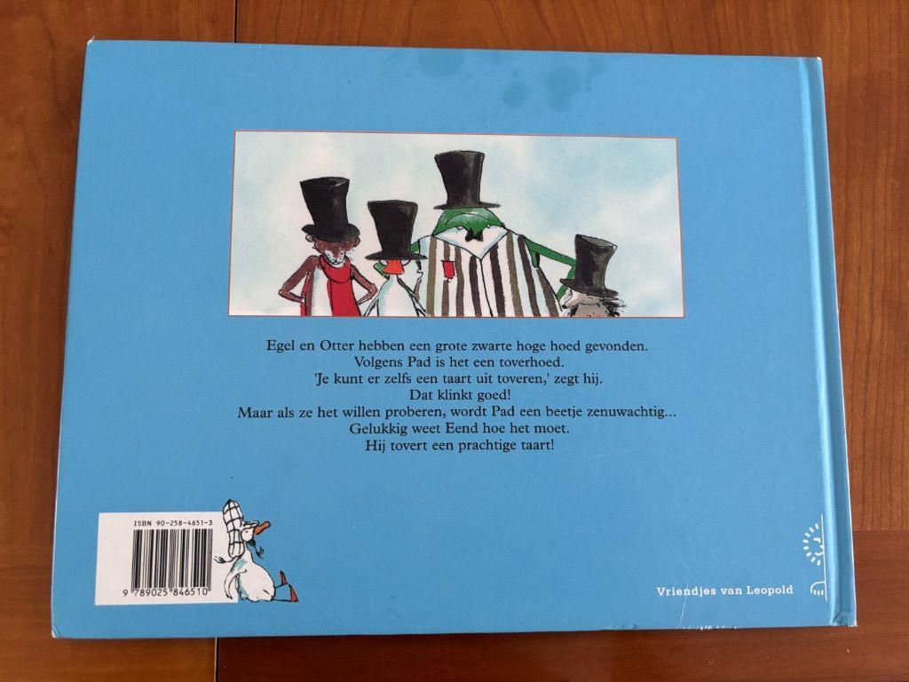 Pad, Egel en Otter hebben een grote hoge zwarte hoed gevonden. Volgens Pad is het een toverhoed. Je kan er zelfs een taart uit tove ren, zegt hij. En Pad kan het weten want Pad heeft een leesbril. ‘Simsalabim,’ zegt hij. En tot ieders verbazing komt er een heuse taart uit de hoed tevoorschijn! ‘Hoe kan dat nu?’ vraagt Egel. ‘Tja...’ zegt Eend. ‘Toverij.’