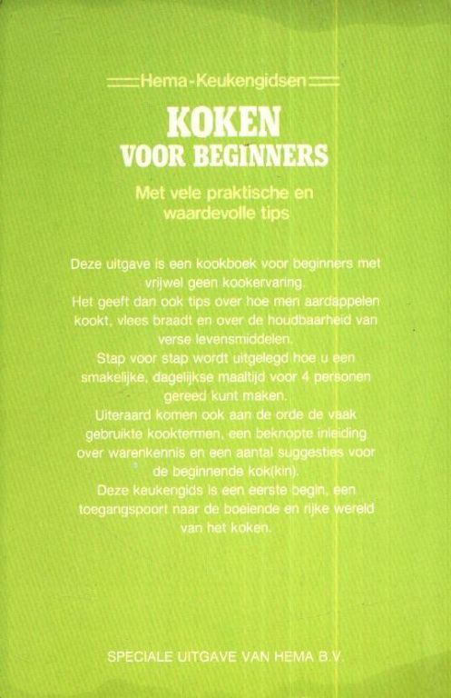 Deze uitgave is een kookboek voor beginners met vrijwel geen kookervaring.