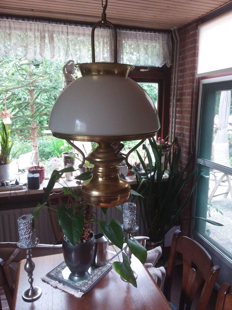 Electronic. Oliehanglamp brandt aan bovenkant en onderkant
