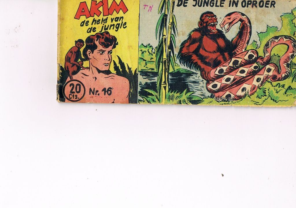 Tekenaar/schrijver Augusto Pedrazza/Roberto Renzi. Uitg. Walter Lehning. 1953. Standaard formaat 17 x 7,7 cm. Variant A (achterzijde Akim, de held van de jungle). Lichte gebruikssporen, o.a. ter versteviging gelijmd bij de rug en aan ...