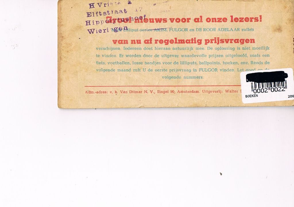 Tekenaar/schrijver Augusto Pedrazza /Roberto Renzi. Uitg. Walter Lehning. 1954. Standaard formaat 17 x 7,7 cm. Wat gebruikssporen bij rug en achterkaft. Gewicht 14 gram. Verzendkosten vanaf € 1,01. Prijs € 4,50.