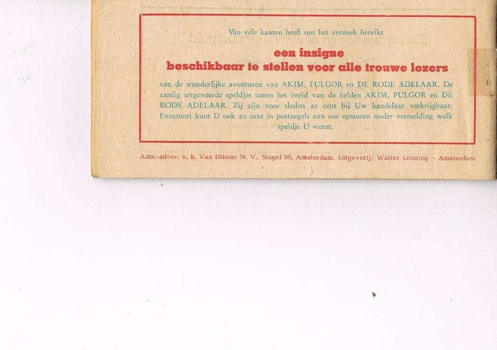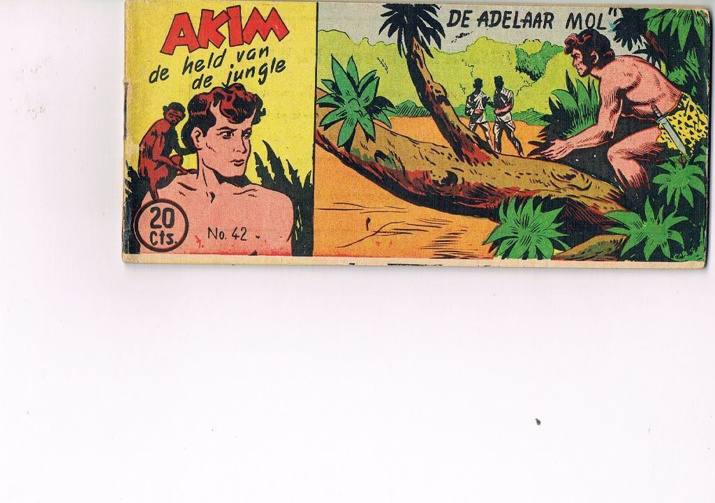 Tekenaar/schrijver Augusto Pedrazza/Roberto Renzi. Uitg. Walter Lehning. 1953. Standaard formaat 17 x 7,7 cm. Variant A (achterzijde Akim, de held van de jungle). Lichte gebruikssporen, o.a. ter versteviging gelijmd bij de rug en aan ...
