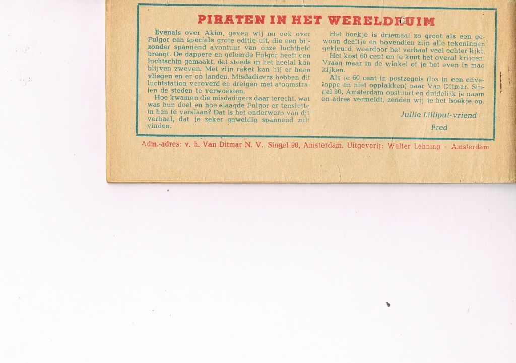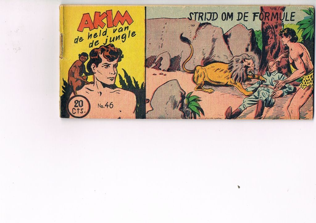 Tekenaar/schrijver Augusto Pedrazza/Roberto Renzi. Uitg. Walter Lehning. 1953. Standaard formaat 17 x 7,7 cm. Variant A (achterzijde Akim, de held van de jungle). Lichte gebruikssporen, o.a. ter versteviging gelijmd bij de rug en aan ...