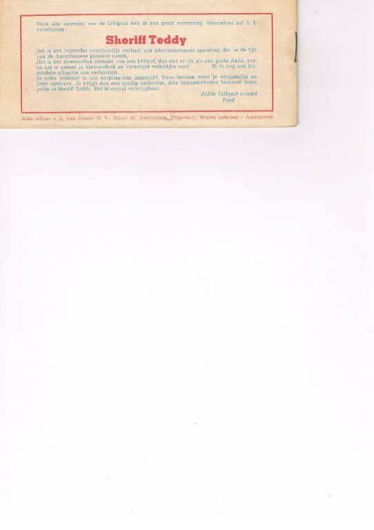 Uitg. Walter Lehning. 1955. Tekenaar Enzo Chiomenti. Praktisch nieuwstaat. Het probleem bij deze boekjes is dat de papierkwaliteit niet zo sterk is. Ik heb enkele boekjes bekeken en gezien, dat de rug vaak 1 of 2 mm speling heeft boven en/of onder. Als je dat nauwkeurig in kaart wilt brengen, is de kans groot dat e.e.a. verder uitscheurt. Dat lijkt mij dus niet zinvol. Prijs € 49,95. Verzendkosten vanaf € –,87. U kunt ook overwegen een brievenbuspakje € 4,35 of aangetekend € 8,45 of € 8,60.