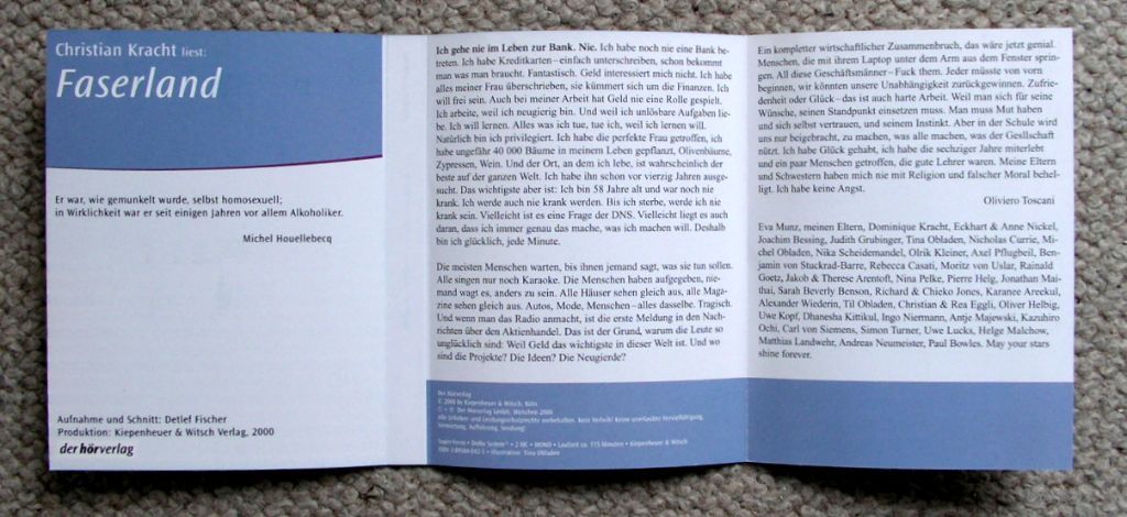Christian Kracht liest Faserland luisterboek op 2 cassettes 2000 ZGAN
