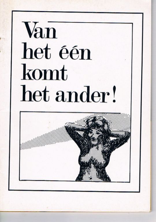 Uitg. De Vaar (van TUK!). Kaften ontbreken. Voorzijde: vrouw met hand op vagina (loopt niet weg!). Nu de kaften weg zijn, is de volgende bladzijde (voor en achter) ook al los gaan zitten met een beetje rugklachten. Verder in zeer goede ...