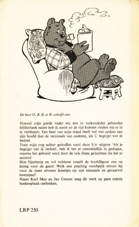 Toen mijn oog echter getroffen werd door Uw uitgave 'Als je begrijpt wat ik bedoel', heb ik het er onmiddellijk in geslagen, waarna het geboeid werd door de vele diepe gedachten die het er aantrof.
