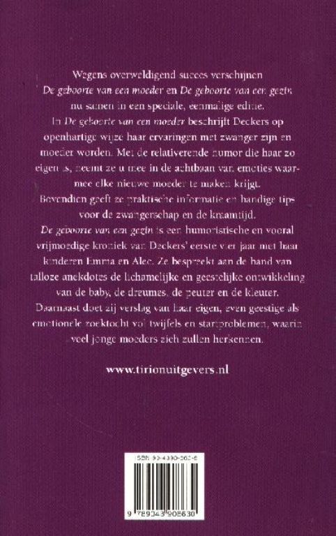 In De geboorte van een moeder beschrijft Deckers op openhartige wijze haar ervaringen met zwanger zijn en moeder worden.