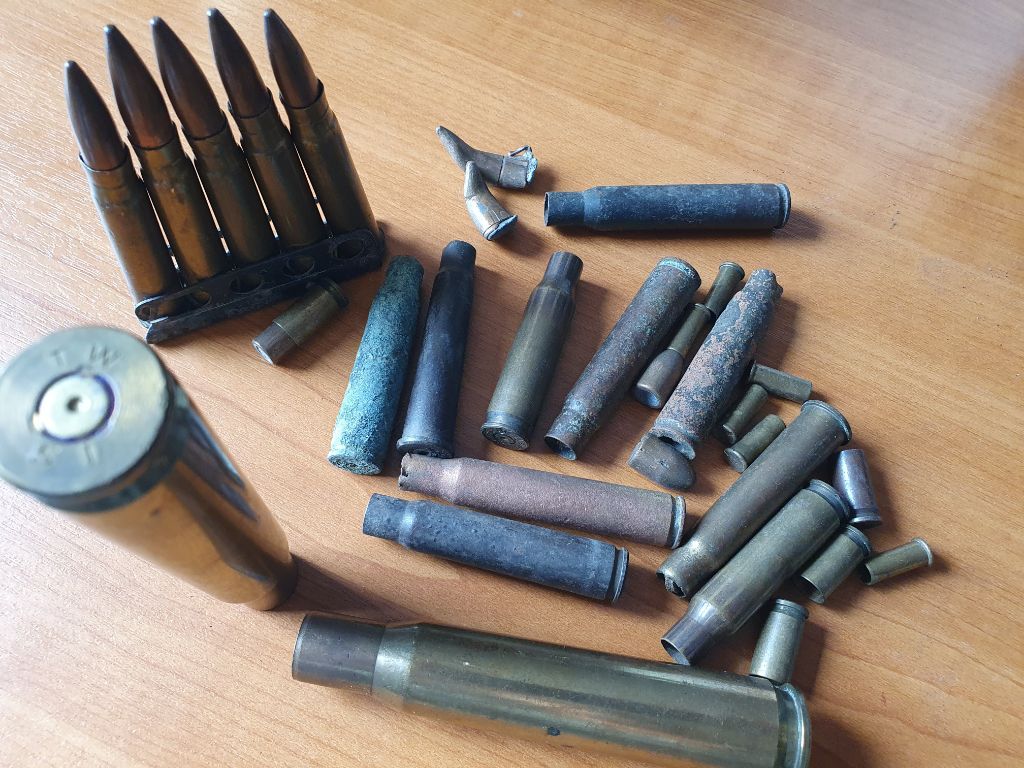 diverse kogels, hulzen etc, waaronder een clip en bodemvondsten