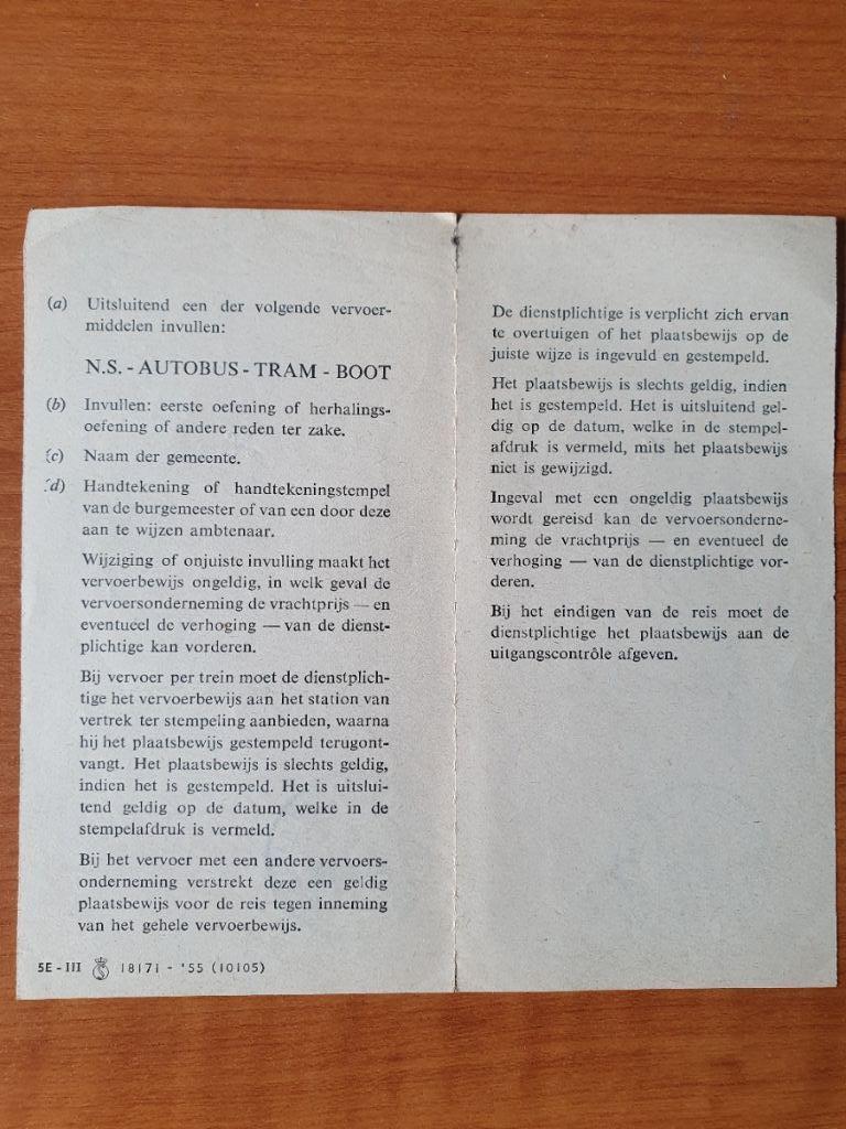 Plaatsbewijs voor een dienstplichtige