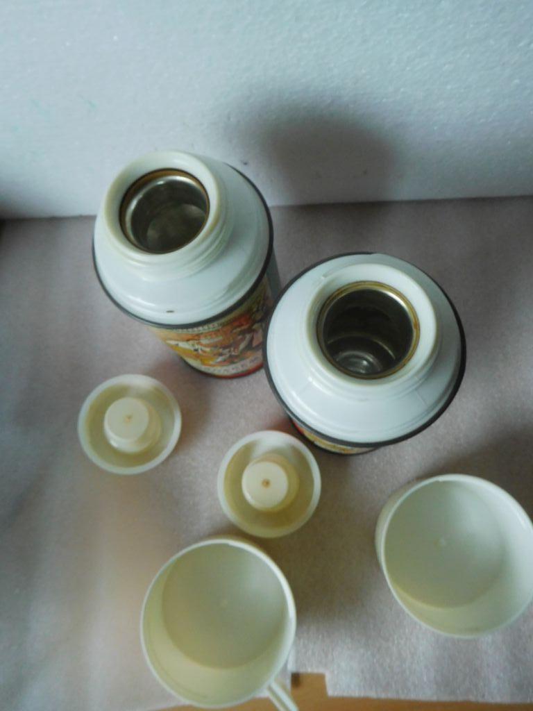 Het thermoskannetje dateert van eind jaren vijftig van de vorige eeuw. Er passen precies twee kopjes koffie, thee of chocolademelk in.