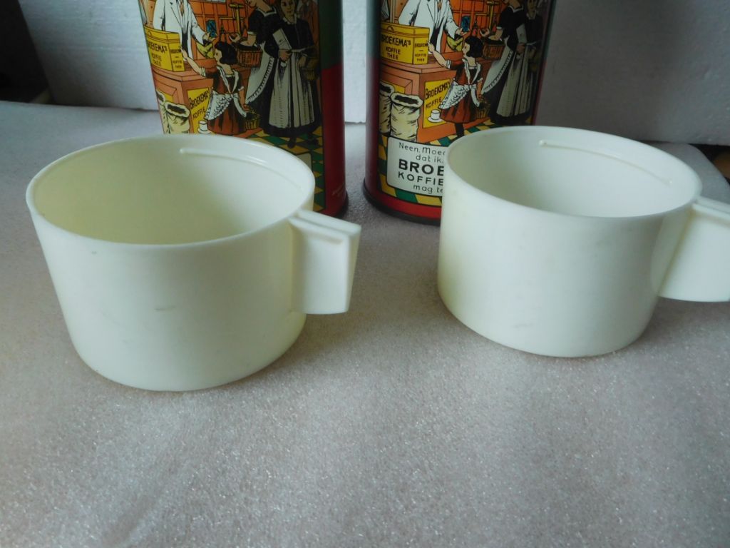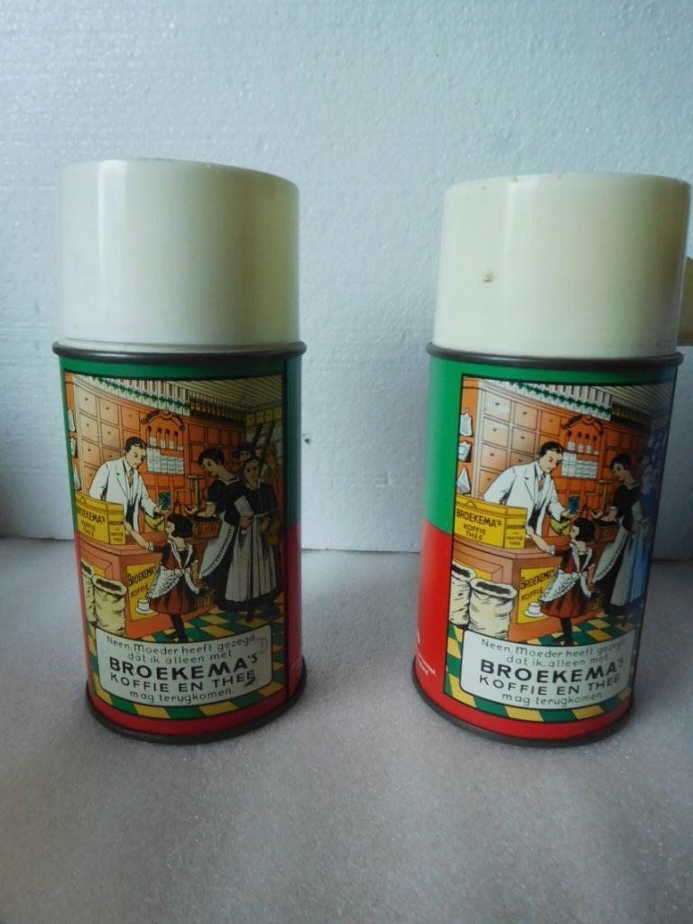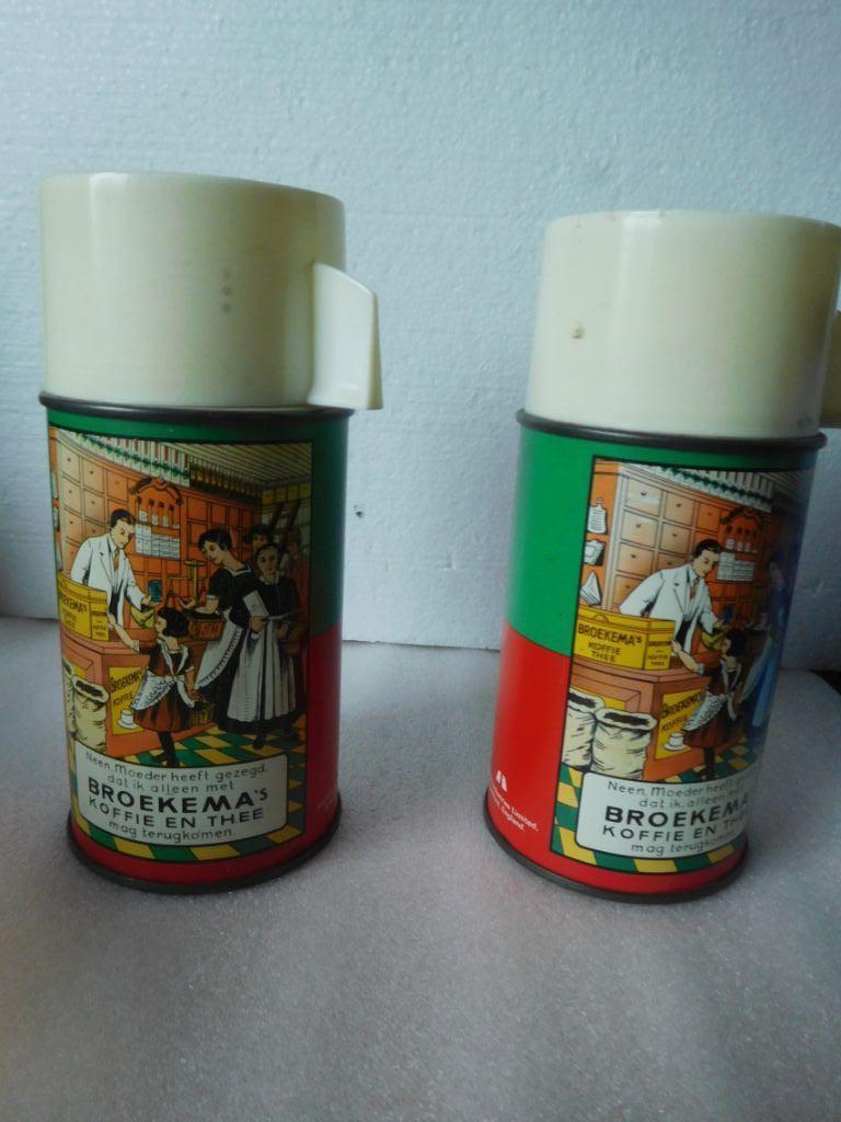 Thermoskan voor precies twee kopjes koffie, thee of chocolade. De body is van blik, het binnenwerk van glas en de dop en beker zijn van plastic gemaakt. Hiermee duidt deze kan de overgang van de jaren '50 naar '60 van de vorige eeuw waarin de nieuwe materialen hun opmars maakten. Het kannetje is gemaakt in Engeland door Aladdin Industries Limited in Greenford, England voor Broekema. Voor het kannetje kon gespaard worden met het spaarpuntensysteem.