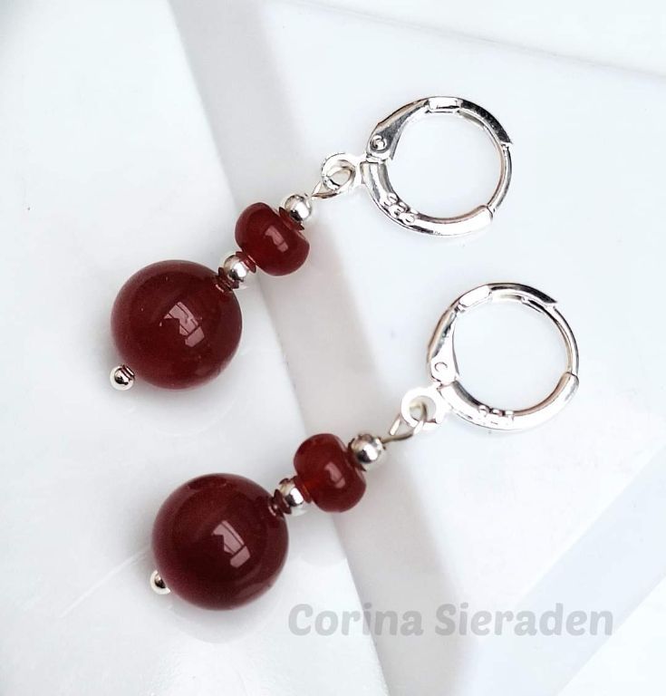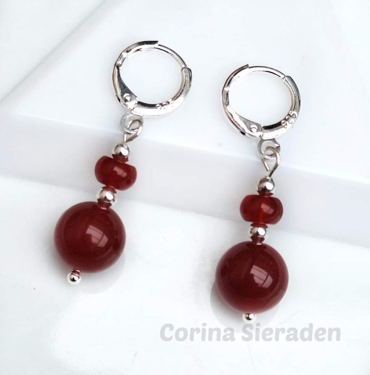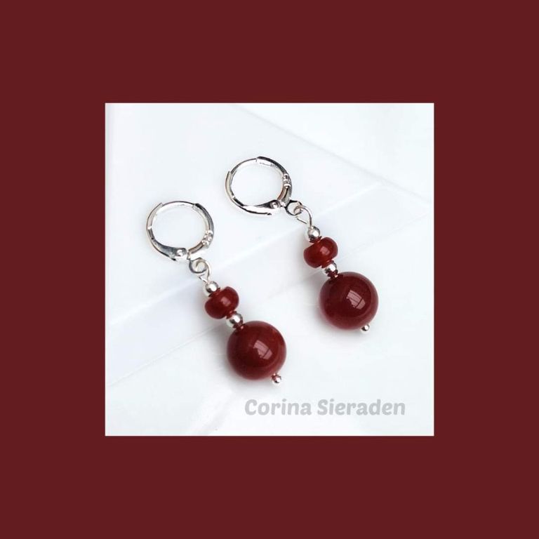 CORINA SIERADEN Sterling zilveren oorringen met rode agaat.