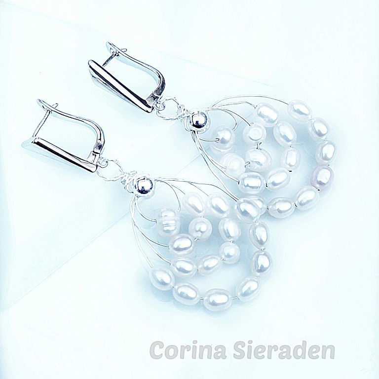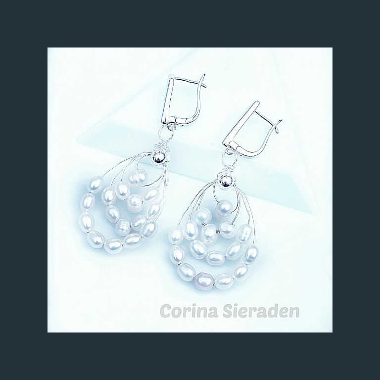 Wire wrapped oorstekers met zoetwaterparels in sterling zilverdraad, met sterling zilveren oorstekers.