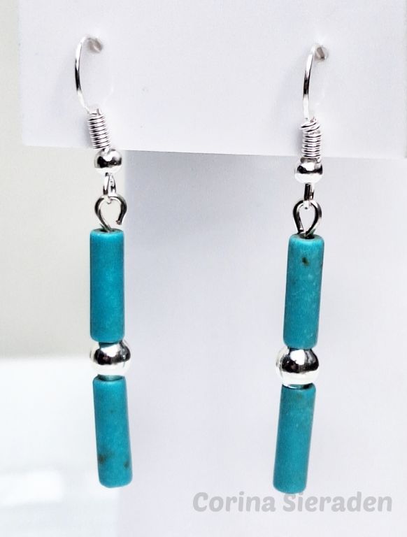 CORINA SIERADEN Zilveren oorhangers met howliet. Lengte: 5 cm.
