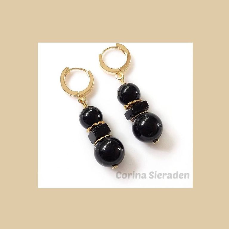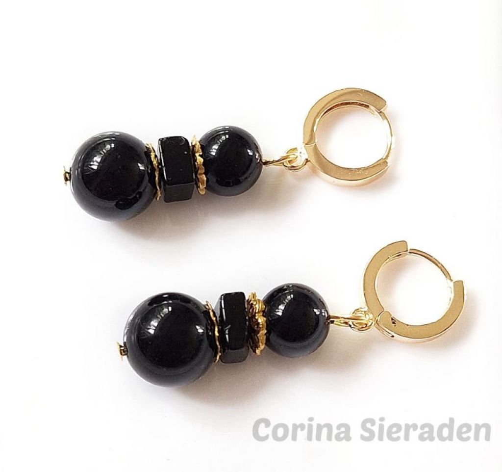 CORINA SIERADEN Messing oorringen met agaat en messing kralenkapjes. Lengte: 4 cm.