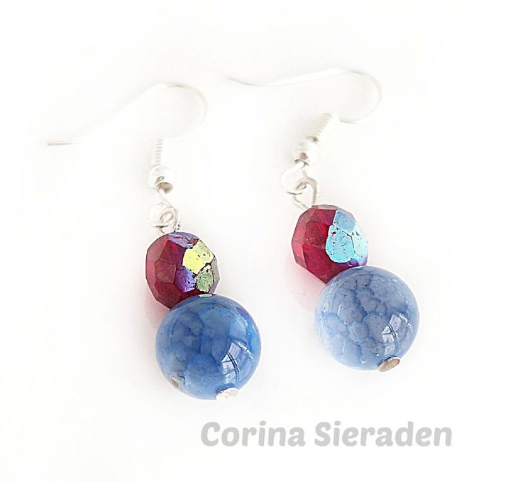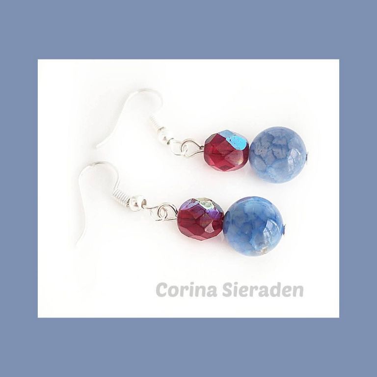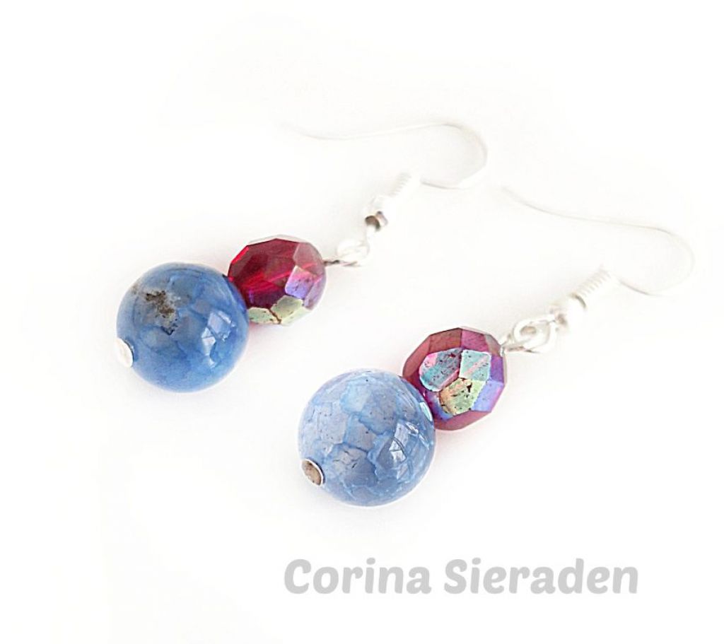 CORINA SIERADEN Zilveren oorhangers met dragon veins agaat en facetkralen. Lengte: 4 cm.