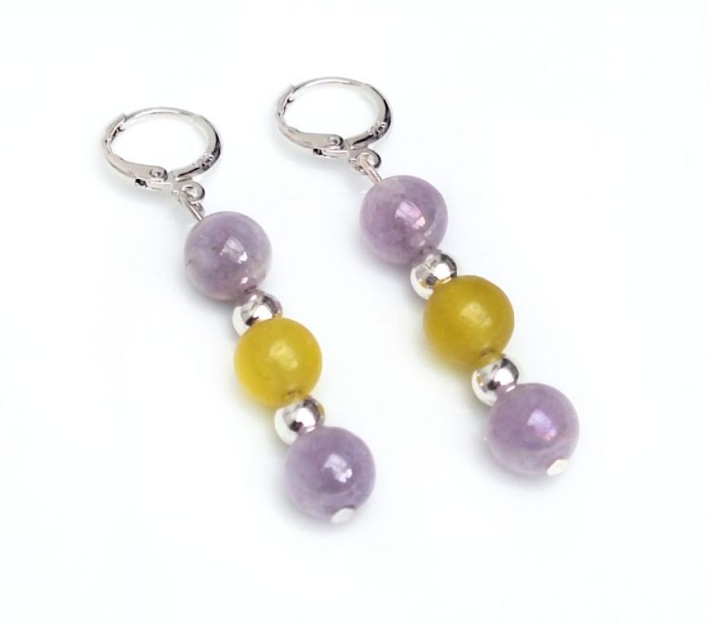 CORINA SIERADEN Zilverkleurige oorstekers met frosted jade, labradoriet rondelle en strass spacers.
