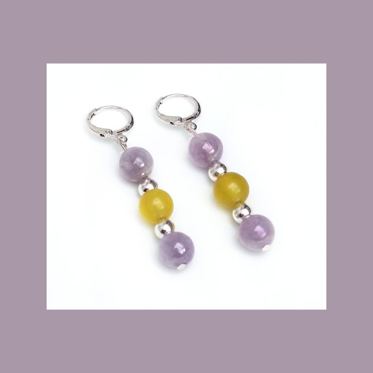 CORINA SIERADEN Sterling zilveren oorringen met agaat, angeliet en zilverkleurige spacers. Lengte: 5 cm.