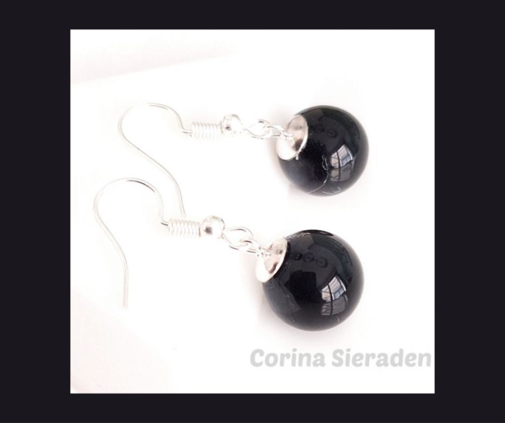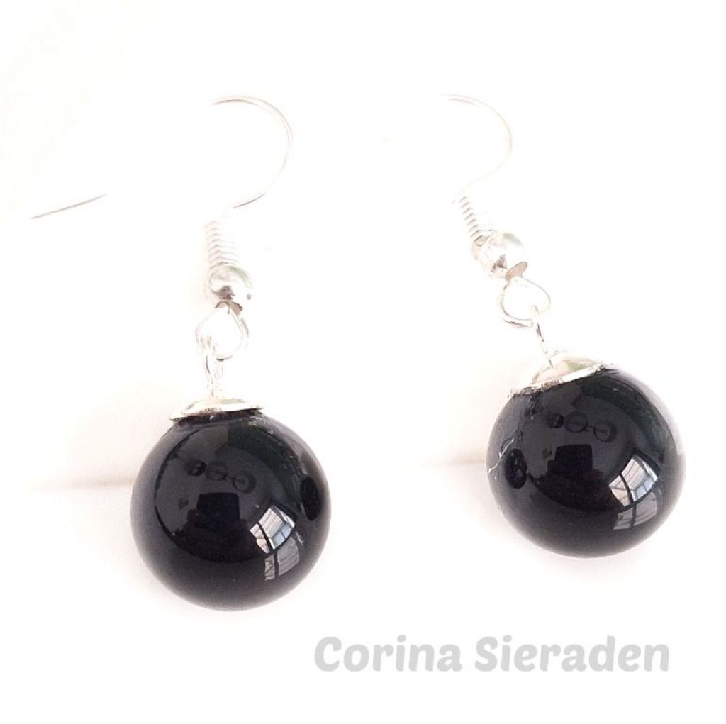 Zilveren oorhangers met 12 mm onyx. Tijdloze, elegante edelsteen oorbellen, perfect voor dagelijks gebruik of een speciale gelegenheid.
