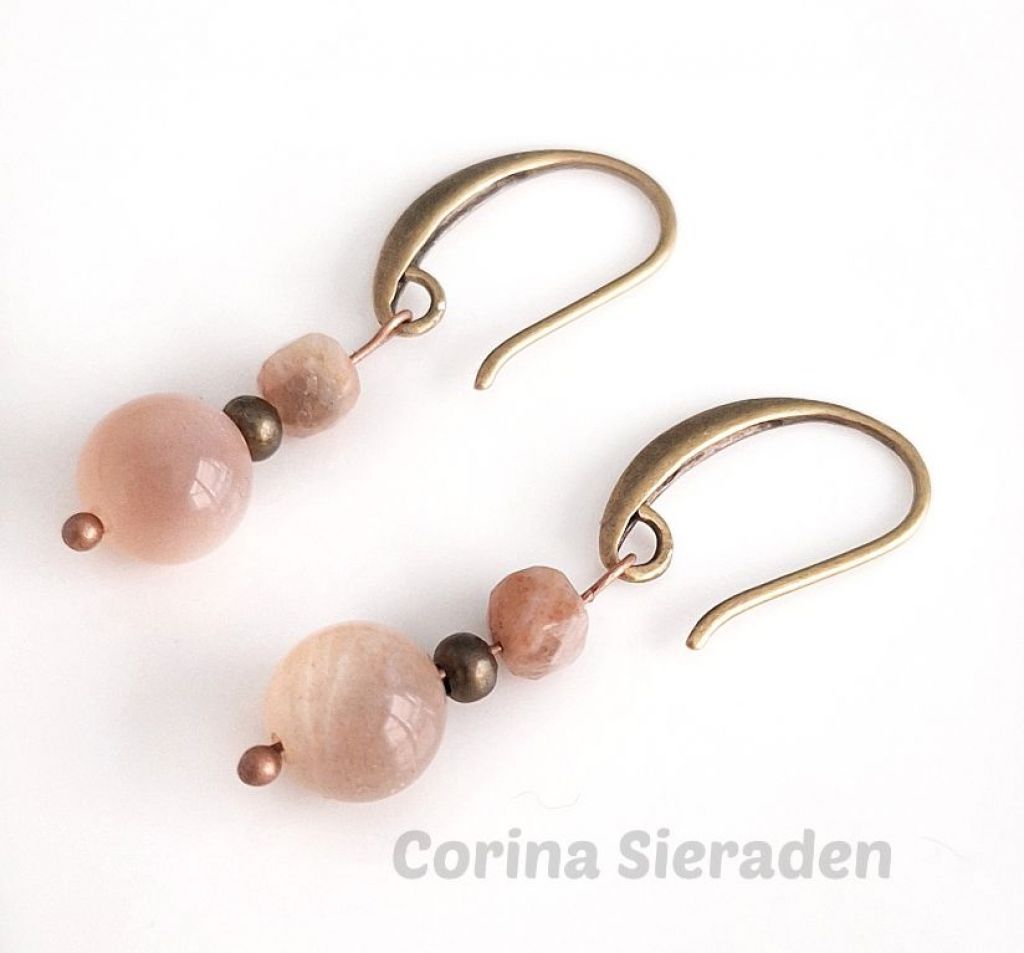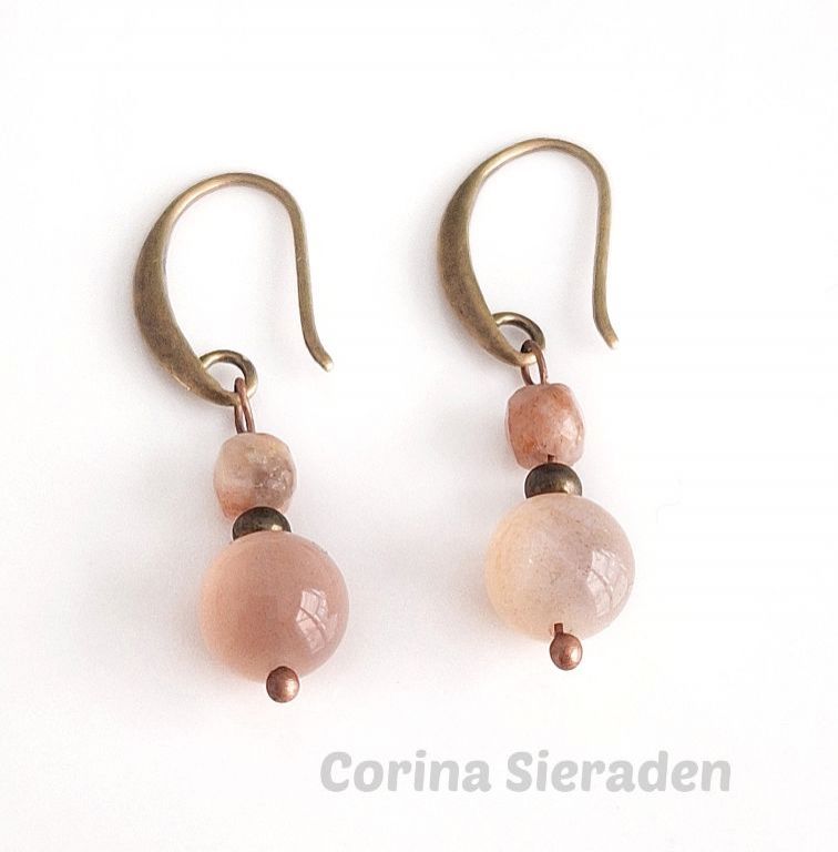 CORINA SIERADEN Bronzen oorhangers met zonnesteen. Lengte: 3,5 cm.