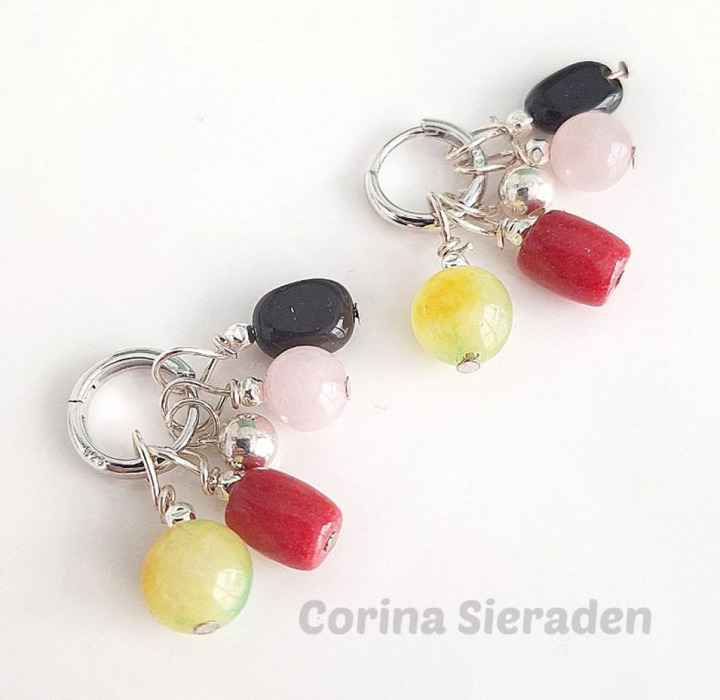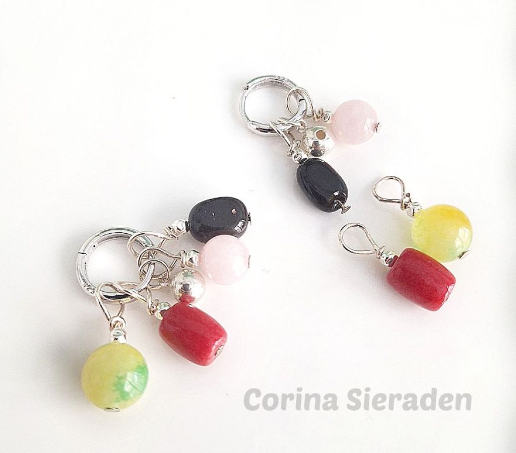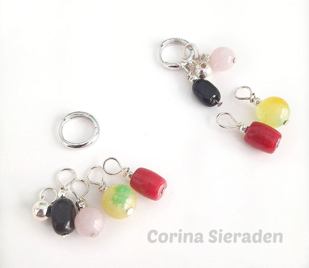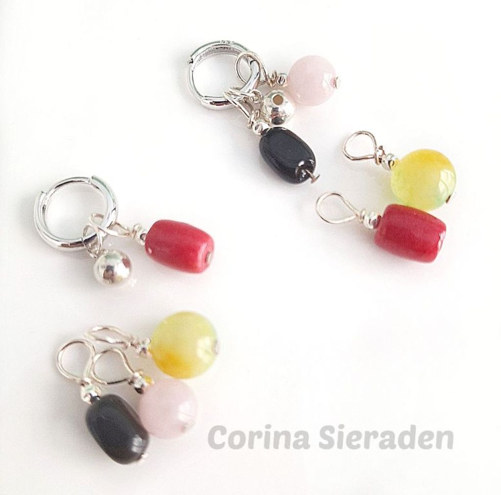 Deze sterling zilveren oorringen worden geleverd met 4 verwisselbare natuursteen bedels én een zilveren bedel.