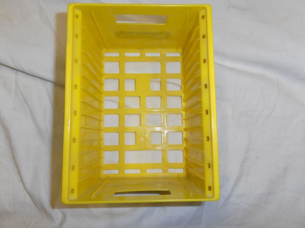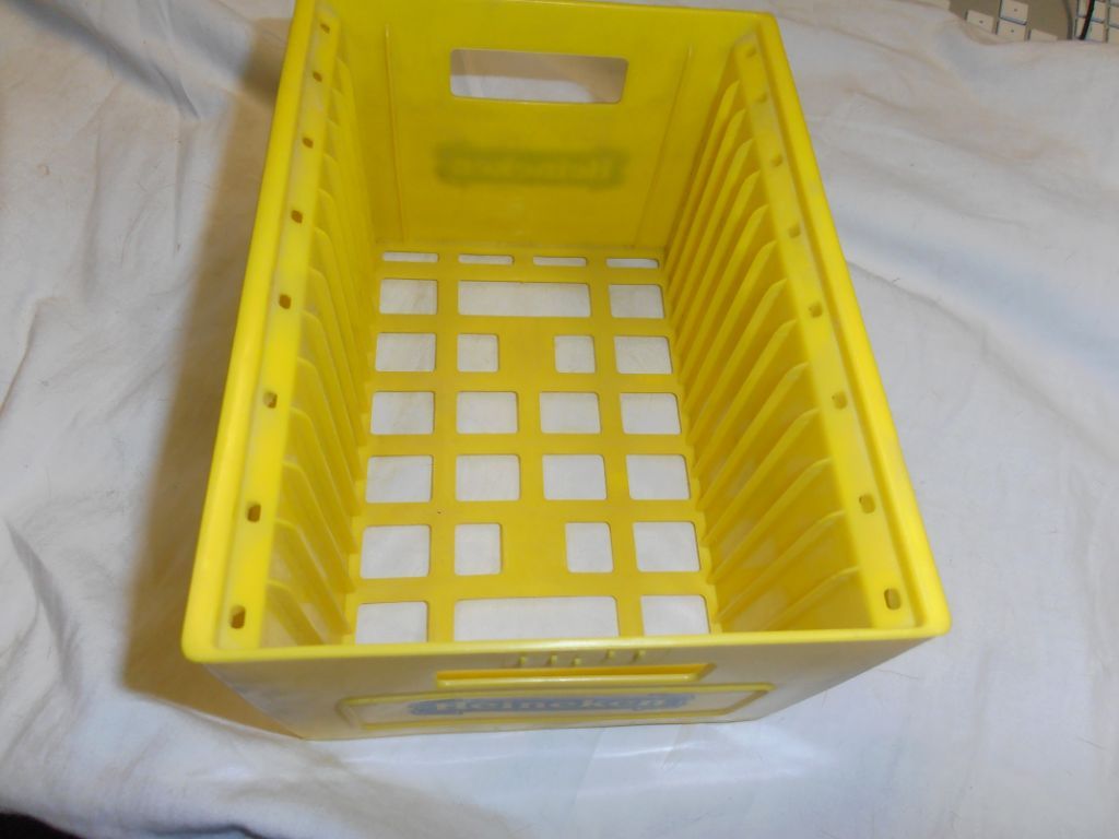 Plastic krat voor het opbergen van CD's en DVD's, afhankelijk van het formaat. De maten van het kratje zijn inwendig ca. 19,5 x 13,5 x 11 cm. Er kunnen 14 CD's in. Nieuwstaat of zo goed als nieuw. Er zit nog een half afgescheurde sticker van supermarkt De Boer op.  De leeftijd schat ik op ca. 20 jaar. Verzendkosten vanaf €  4,50. Prijs € 9,95.
