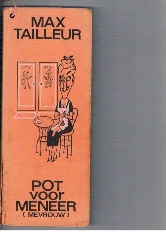 Uitg. H.J.W. Becht. Zevende druk november 1975. Gebonden, Formaat 11,5 x 27,5 cm. 112 pagina's. Dikte 1,5 cm. Gewicht 247 gram. Bovenaan zit een lusje om het boek ergens op te hangen. Op het toilet b.v. De Joodse humor weet ik wel te waarderen. Niet de zuinigheid. Het boek is na 45 jaar nog in vrij goede staat. Alleen de rugband is bij veel van deze boeken weg of kapot. Dat komt, omdat men het papier, dat over de voor- en achterzijde is geplakt ook laat doorlopen over het karton van de rug. Doordat dat karton alleen wordt vastgehouden door het geplakte papier, ligt het voor de hand, dat na diverse malen beetpakken het papier gaat scheuren en dus de rugband los laat of verdwijnt. Zo ook met dit boek. Hij zit nog een beetje vast,
