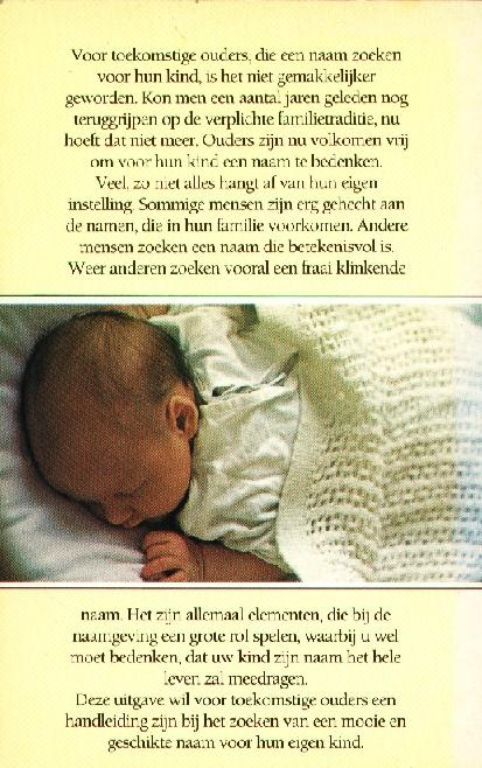 Deze uitgave wil toekomstige ouders een handleiding bieden bij het zoeken van een naam voor hun kind.