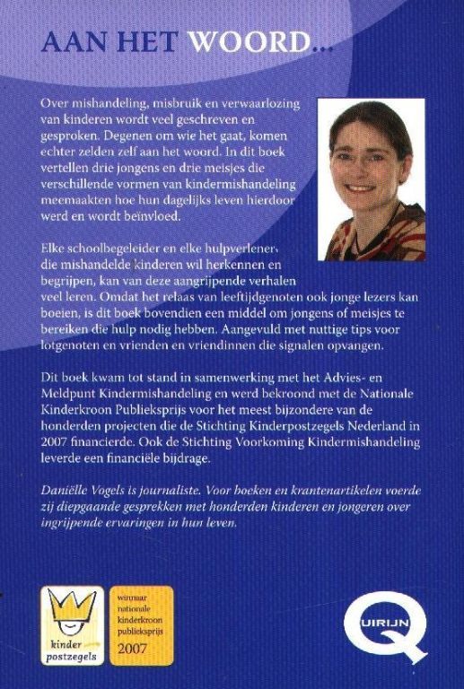 Dit boek kwam tot stand in samenwerking met het Advies- en Meldpunt Kindermishandeling en werd bekroond met de Nationale Kinderkroon Publieksprijs voor het meest bijzondere van de honderden projecten die de Stichting Kinderpostzegels Nederland in 2007 financierde.