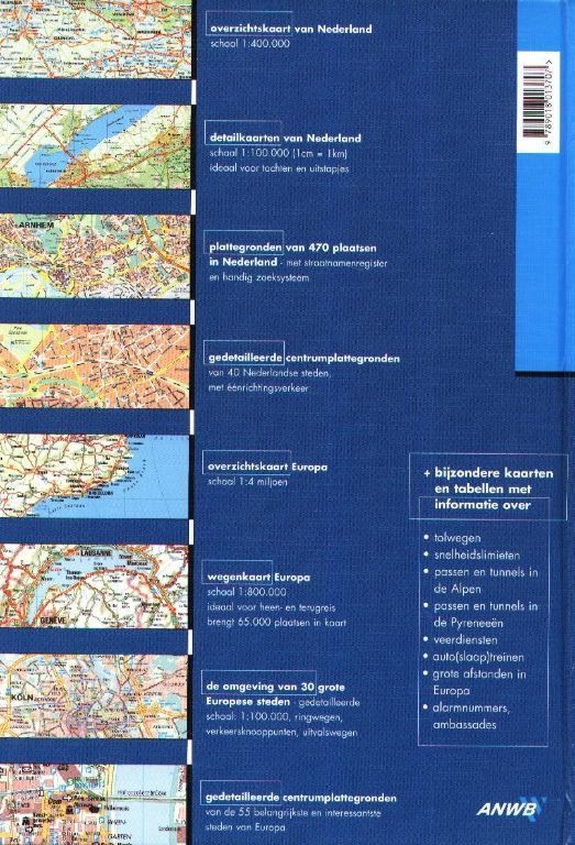 Het indrukwekkende boekwerk bevat tevens overzichts- en detailkaarten, plattegronden van 470 plaatsen en gedetailleerde centrumplattegronden van 40 steden in Nederland.