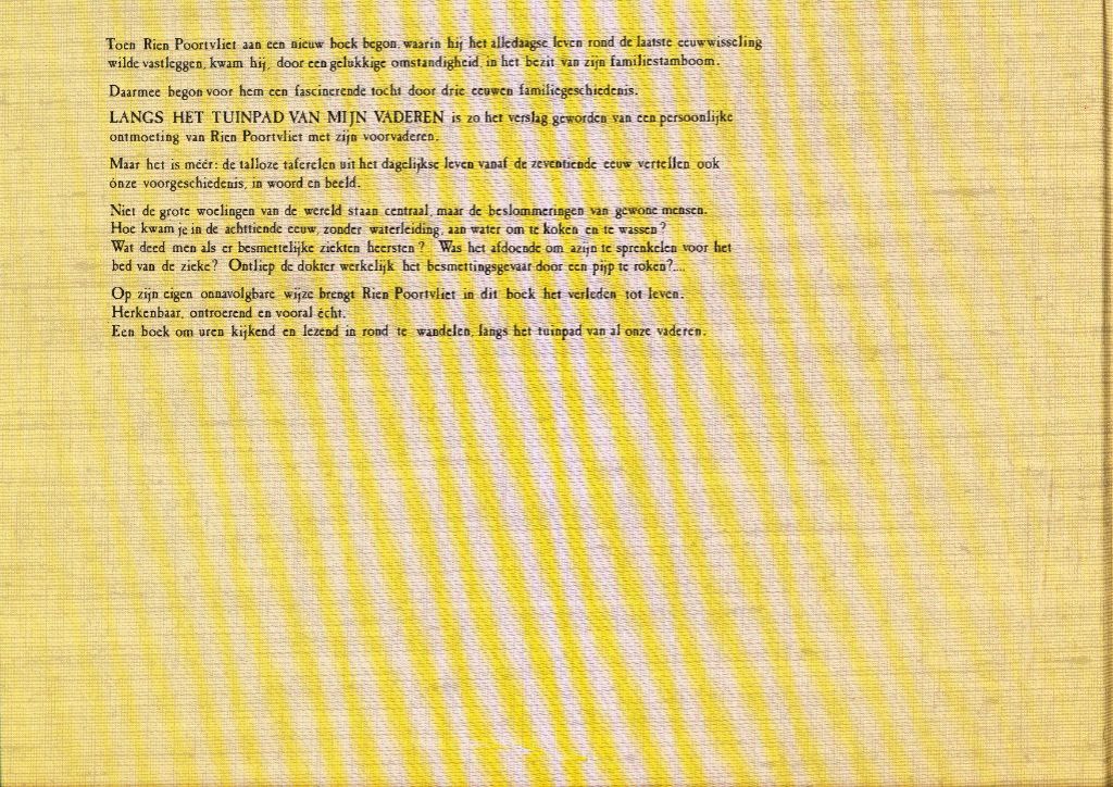 LANGS HET TUINPAD VAN MIJN VADEREN is zo het verslag geworden van een persoonlijke ontmoeting van Rien Poortvliet met zijn voorvaderen.