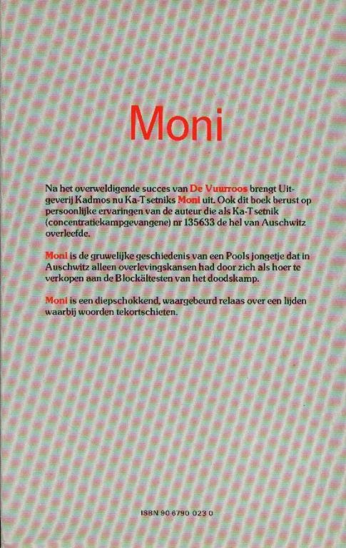 Moni is de gruwelijke geschiedenis van een Pools jongetje dat in Auschwitz alleen overlevingskansen had door zich als hoer te verkopen aan de Blockaltesten van het doodskamp.