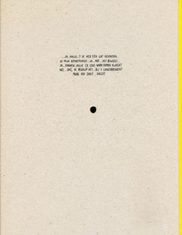 Het gat is het verhaal van de charmante hoofdpersoon die op een ochtend wakker wordt en een gat in zijn appartement aantreft.
