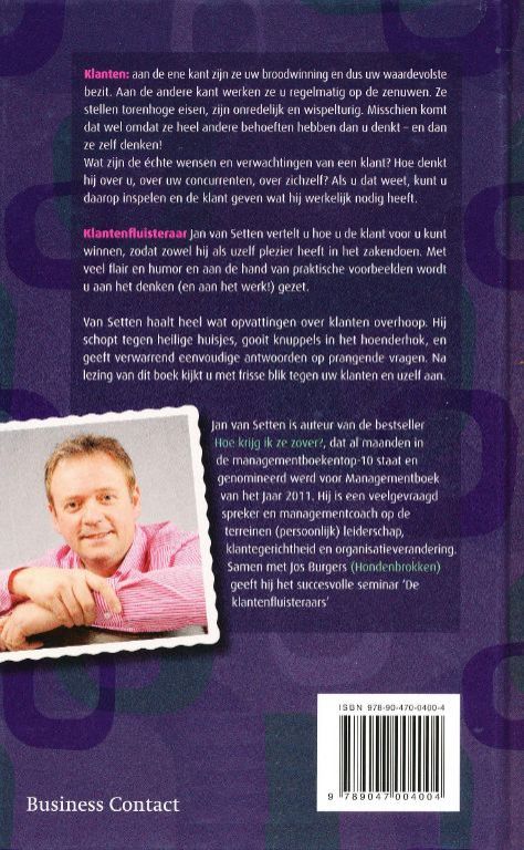 Jan van Setten vertelt u in ‘De klantenfluisteraar’ u hoe u de klant voor zich kunt winnen, zodat zowel hij als uzelf plezier heeft in het zakendoen.