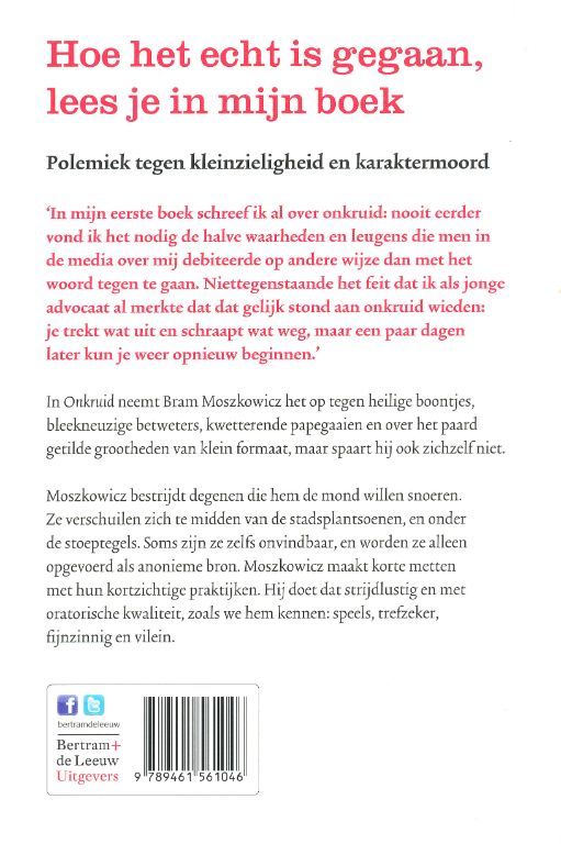 In zijn tweede boek Onkruid maakt Bram Moszkowicz korte metten met heilige boontjes, bleekneuzige betweters, kwetterende papegaaien, over het paard getilde grootheden van klein formaat, maar spaart ook zichzelf niet.