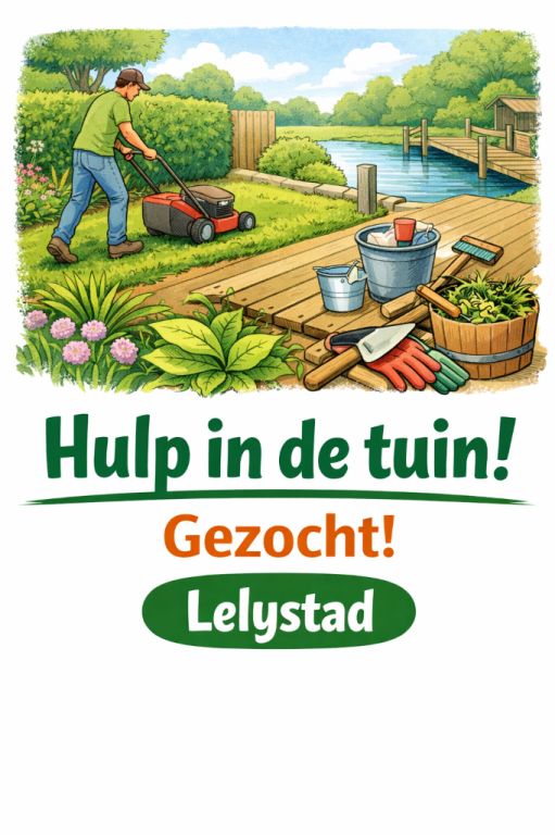 Wij zoeken iemand die in principe om de week maar indien nodig vaker, bij ons de tuin wil bijhouden, uiteraard tegen betaling. Het gaat om diverse werkzaamheden: gras maaien, snoeien en onkruid wieden. Maar ook het schoonhouden van de buitenboel en de steigers.
