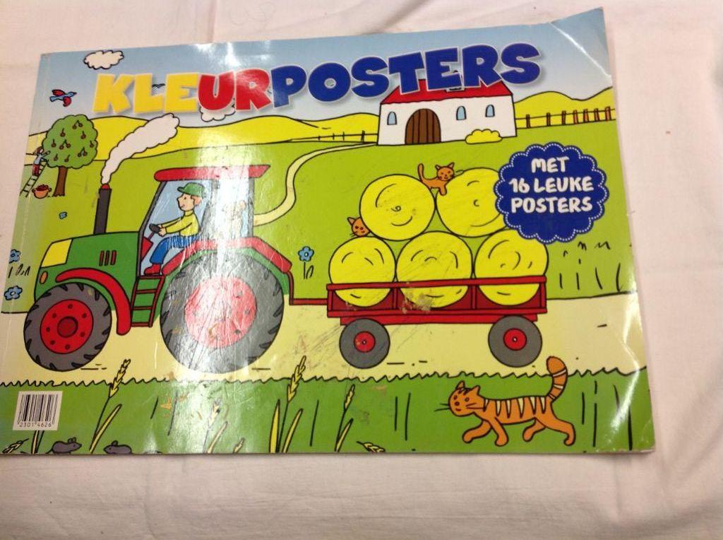 Eigenlijk een opgevoerd kleurboek. Formaat 42 x 29,2 cm. Deze past dus niet door de brievenbus. Er zijn wat gebruikssporen o.a. wat krasjes op de voorkaft Het destructieve zit erbij sommigen al vroeg in. Verder hier en daar een klein vouwtje en een beetje gekalk met een kleurpotlood of viltstift op de binnenzijde van de voorkaft. De eerste kleurplaat is reeds gedeeltelijk gekleurd, dus dat scheelt weer werk voor de nieuwe kleurder. Ik tel 15 posters, dus kennelijk is er in de loop der tijd eentje verdwenen. Als je een intelligent creatief kind hebt, kan deze leuke posters vervaardigen, die vervolgens kunnen worden opgehangen of bewaard in het boek of aan liefhebbers kunnen worden gegeven. Voor dit boekwerk vraag ik € 2,50. verzendkosten vanaf € 4,95.