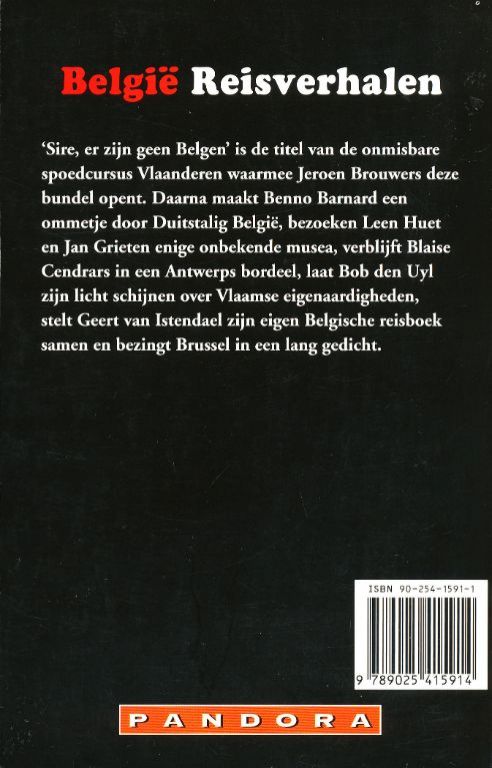 `Sire, er zijn geen Belgen' is de titel van de onmisbare spoedcursus Vlaanderen waarmee Jeroen Brouwers deze, bundel opent. Daarna maakt Benno Barnard een ommetje door Duitstalig België, bezoeken Leen Huet en Jan Grieten enige onbekende musea, verblijft Blaise Cendrars in een Antwerps bordeel, laat Bob den Uyl zijn licht schijnen over Vlaamse eigenaardigheden, stelt Geert van Istendael zijn eigen Belgische reisboek samen en bezingt Brussel in een lang gedicht.