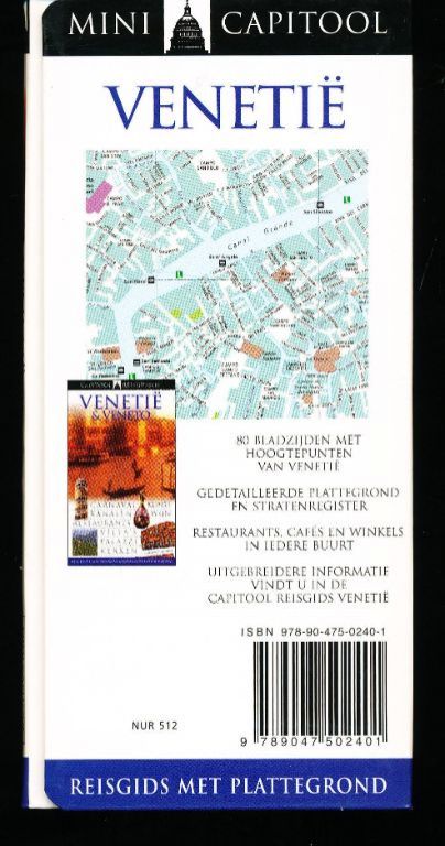 Mini Venetië De Capitool Reisgids Mini Venetië laat je in 80 pagina's de hoogtepunten van deze stad in Italië zien, met handige kleurcodes per wijk.