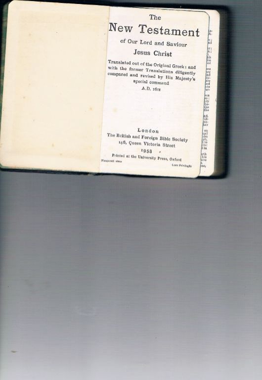 Uitg. The British and Foreign Bible Society. 1953. 384 pagina's. Formaat 8,2 x 12,5 cm. Gebonden. De kaften zien er leerachtig uit. Op 2e schutblad naam en toelichting. Engelse taal. In zeer goede staat. Dikte 1,5 cm. Gewicht 110 gram. Verzendkosten met track & trace vanaf € 3,95. Prijs € 7,50.