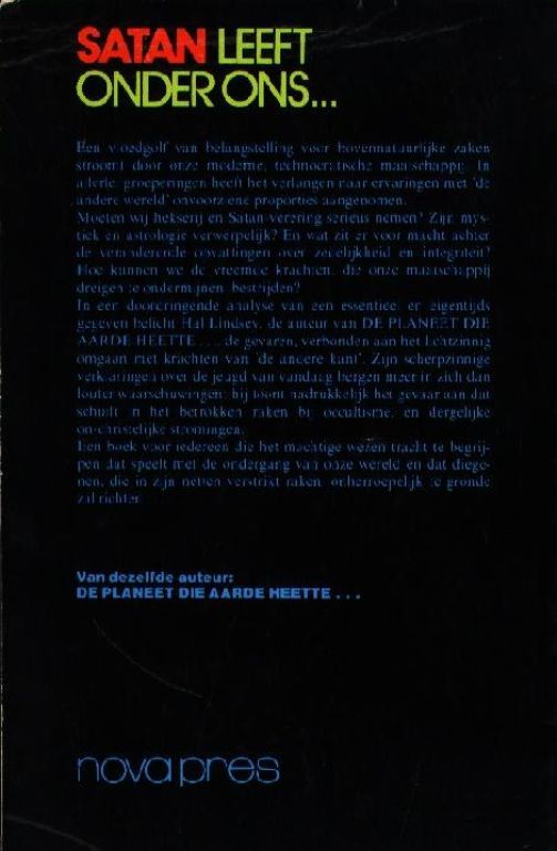 In een doordringende analyse van een essentieel en eigentijds gegeven belicht Hal Lindsay, de auteur van DE PLANEET DIE AARDE HEETTE... de gevaren, verbonden aanhet lichtzinnige omgaan met krachten van 'de andere kant'.