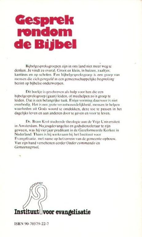 Dit boek geeft het hoe en wat van bijbelgespreksgroepen in kort bestek weer.