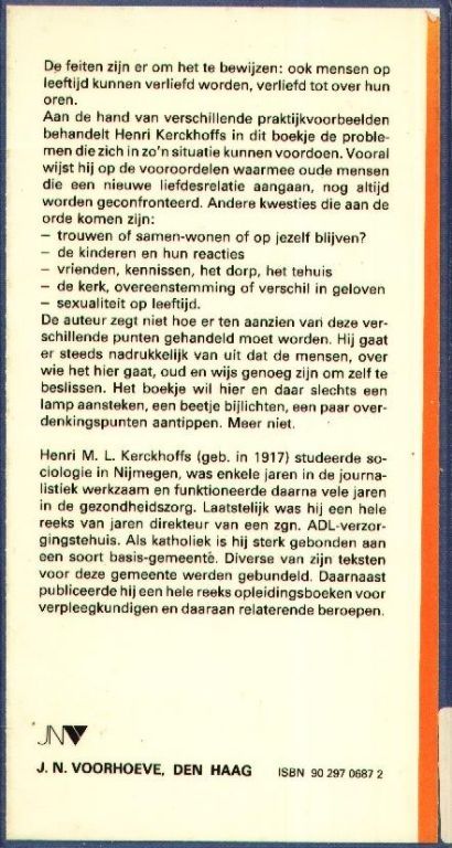 De auteur (geb 1917), rooms-katholiek en behorend tot de kring van de basisgemeenten, beschrijft welke problemen zich voordoen als mensen op leeftijd verliefd worden.