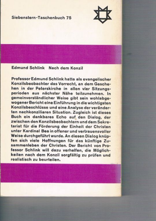 Uitg. Siebenstern Taschenbuch Verlag. 1966. Pocket. 256 pagina's. Nieuwstaat. Is er na het concilie sprake van oecumene? Dikte 1,4 cm. Gewicht 206 gram. Verzendkosten vanaf € 3,95. Prijs € 2,95. Duits.
