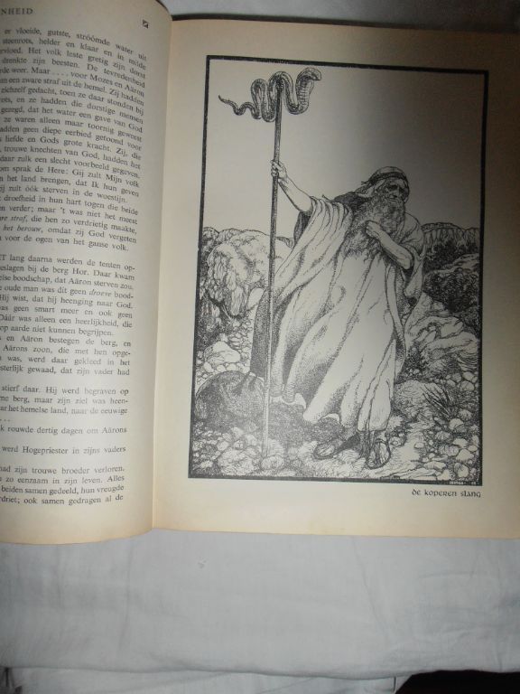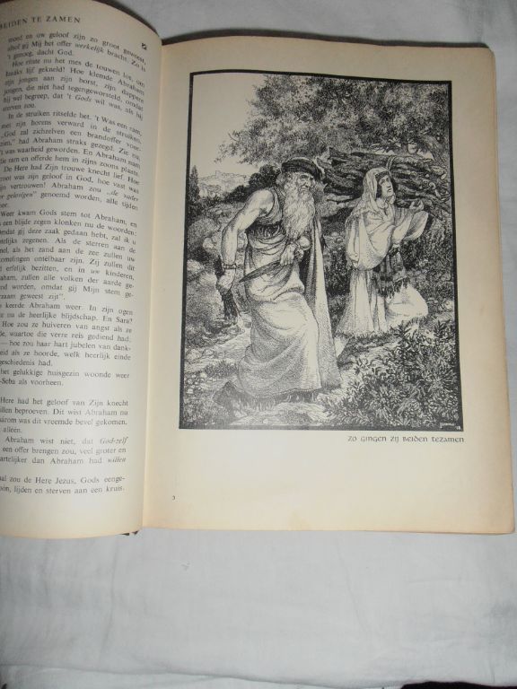 Uitg. Spruyt, van Mantgem & De Does. 1957. 13e druk. Gebonden. 498 pagina's. Tekeningen door Isings. Aanwezig het Oude en het Nieuwe Testament. Op een eenvoudige, ook voor kinderen begrijpelijke wijze verteld. De zeer vele tekeningen maken het boek tot een kostbaar bezit. Ondanks de leeftijd van het boek – ruim 60 jaar! – is dit, dankzij de bindwijze, nog in zeer goede staat. Formaat 21 x 27 cm. Dikte 4 cm. Gewicht 1642 gram. Prijs € 34.95. Verzendkosten vanaf € 5,--.