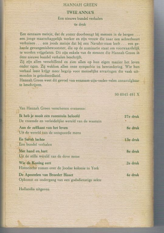 Uitg. Hollandia. 4e druk 1980. Paperback. 186 pagina's. Door lezen is de rug wat schuin gaan staan. Wat kleine vlekjes op voorzijde. En misschien een enkele op de achterzijde. Door de kleur van de kaften is het niet zo goed te onderscheiden. Ziet er verder zeer netjes uit. Dikte 2 cm. Gewicht 285 gram. Verzendkosten vanaf € 3,64 in de rode brievenbus of vanaf € 3,95 als brievenbuspakje bij DHL. Dit boek van de wereldberoemde schrijfster kan ik nu leveren voor slechts € 6,95.