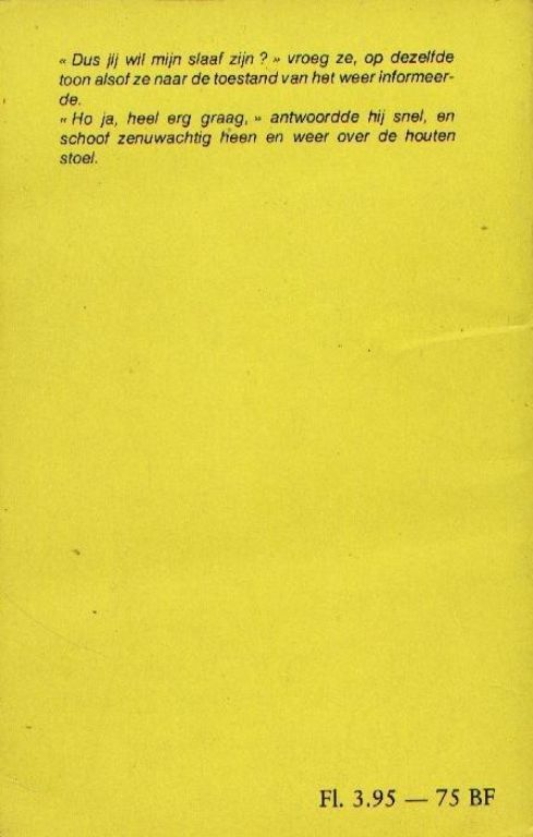 Dus jij wil mijn slaaf zijn ? vroeg ze, op dezelfde toon alsof ze naar de toestand van het weer informeerde